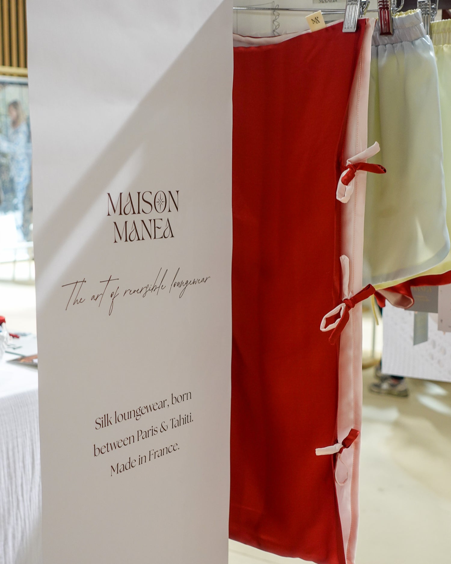 Présenter nos collections en personne nous a permis de mettre en lumière ce qui définit Maison Manea : la douceur des matières, l’attention portée aux détails et l’intention derrière chaque design réversible.