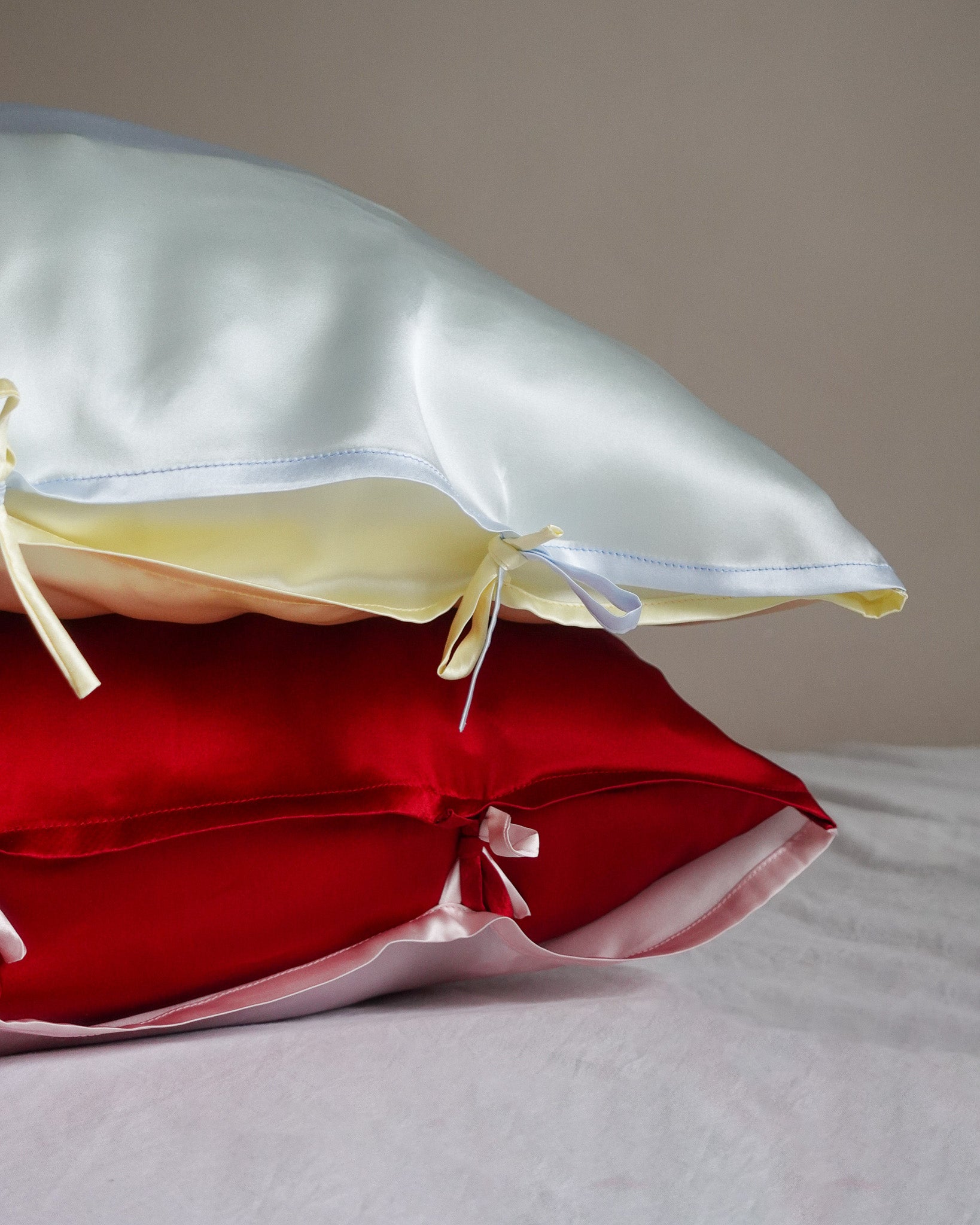 Enveloppez vos nuits de douceur avec les taies d'oreiller réversibles Maison Manea. Un duo en soie de mûrier, conçu comme une caresse pour prendre soin de vos cheveux et de votre peau tout au long de la nuit.